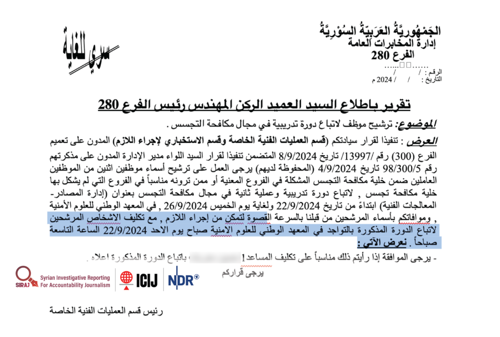 في شهر أيلول/ سبتمبر 2024 وبينما كان النظام السوري المخلوع يكافح للبقاء في ظل تزايد العزلة الدولية وتعاظم مفاعيل العقوبات بفعل قانون قيصر، كانت أجهزة الاستخبارات تحرص على تطوير قدراتها لمواجهة التجسس وتقيم دورات تدريبية لأجل ذلك.