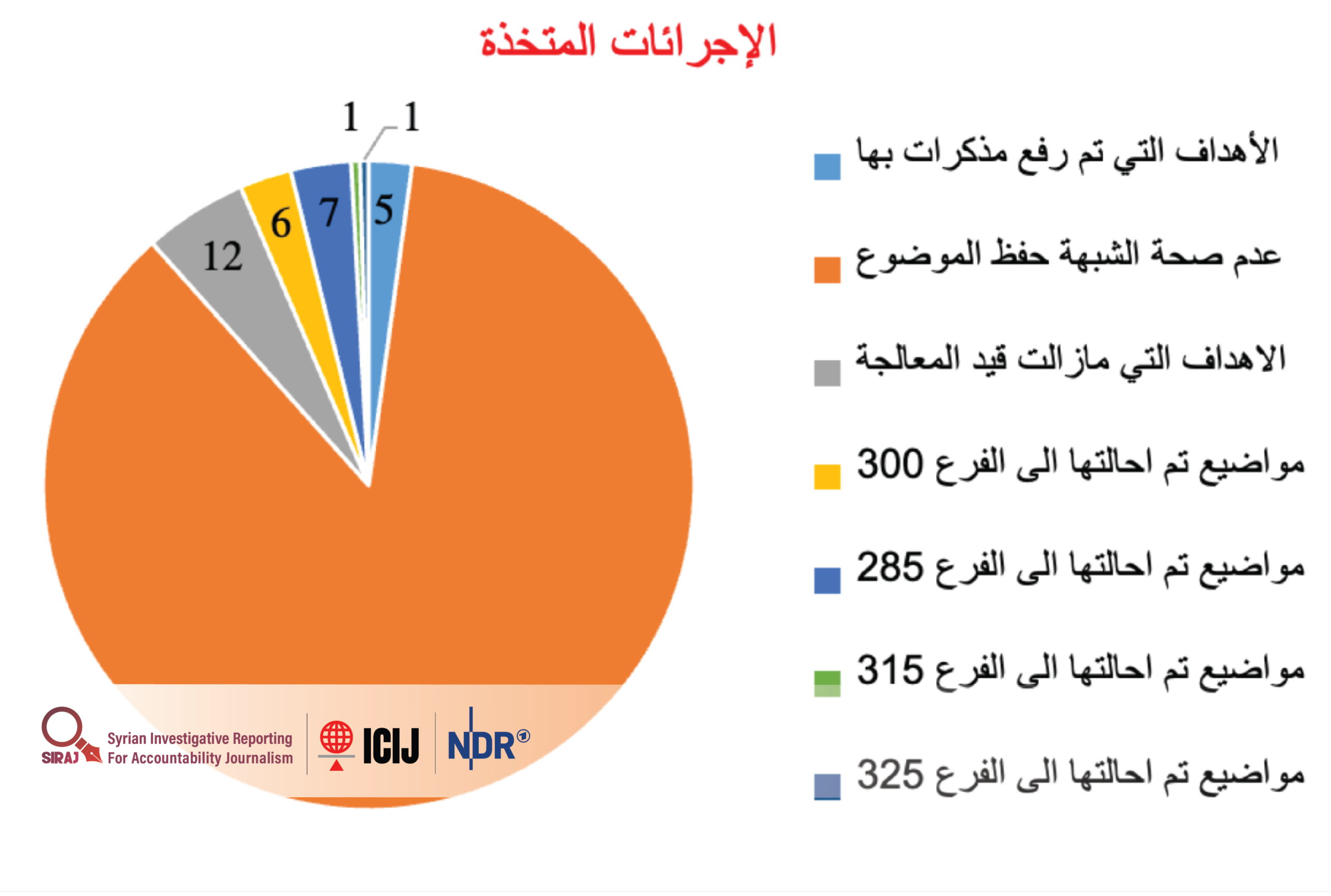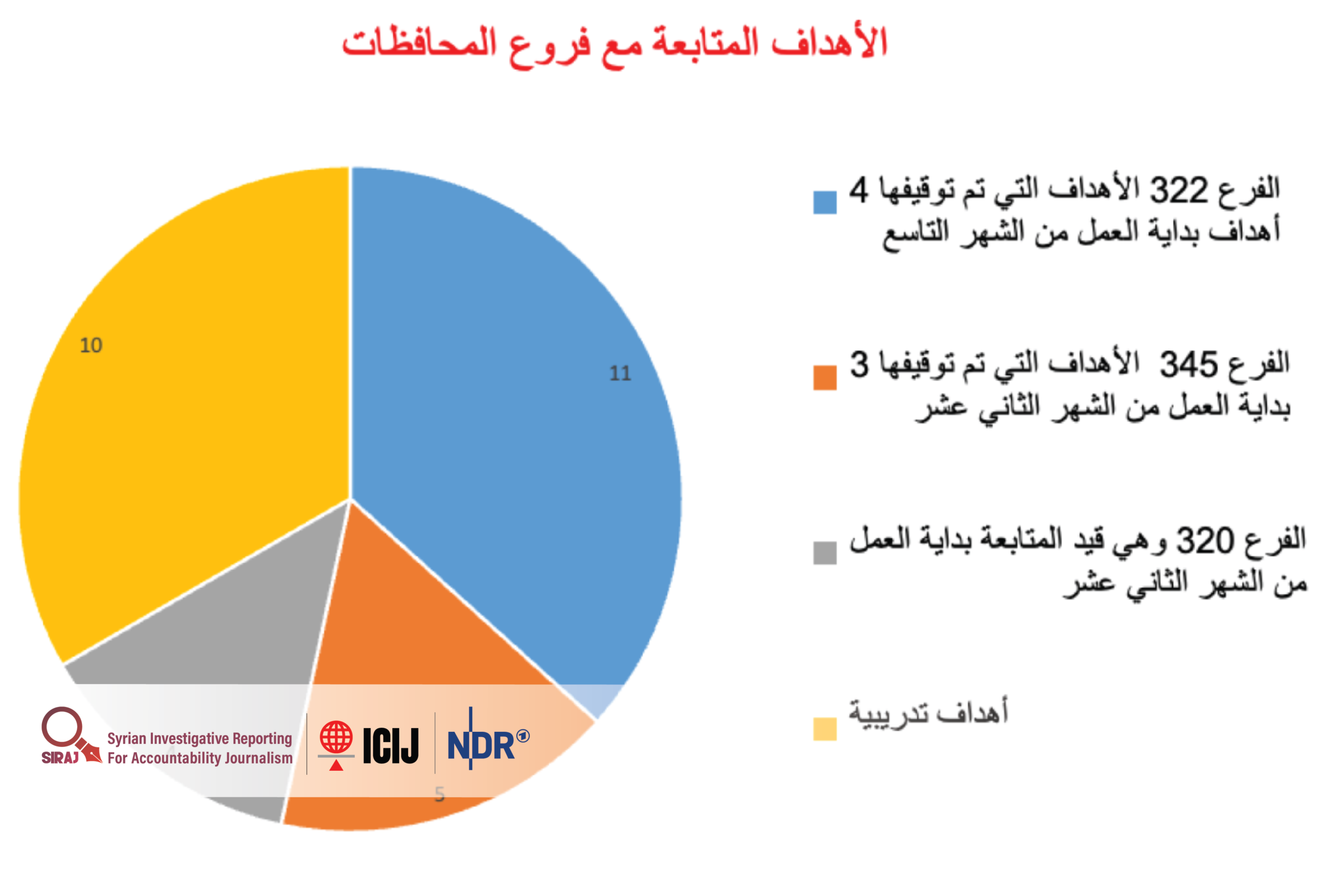 ومن بين الأهداف الـ 233 التي تم تعقبها، رُفعت مذكرات تعقّب ومتابعة بخمس أهداف (مطلوبين)، وبقي 12 هدفاً آخر قيد المعالجة، في حين أحيلت ستة أهداف إلى الفرع 300، و7 أهداف إلى الفرع 285، في حين ذهبت بقية الأهداف إلى الفرعين 235 و315.